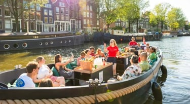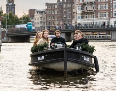 Amsterdam reveals its true beauty when seen from the canals. The water gently carries you past gabled houses, leafy quays, and bridges full of stories. At Mokumboot, we make that experience your own.